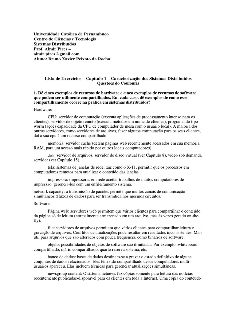 Lista de Exercícios – Capítulo 1 – Caracterização dos Sistemas Distribuídos