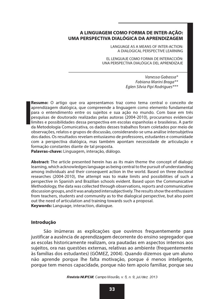 A linguagem como forma de inter-ao: uma perspectiva dialgica da aprendizagem