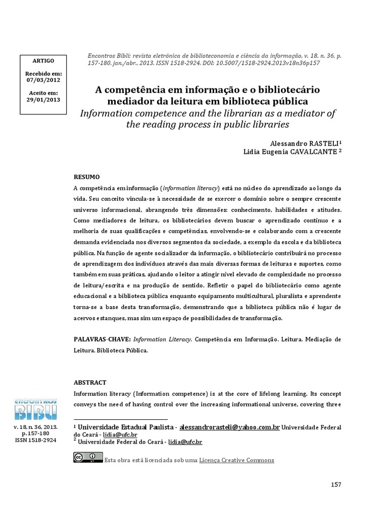 PALAVRAS-CHAVE: Information Literacy. Competncia em Informao. Leitura. Mediao de