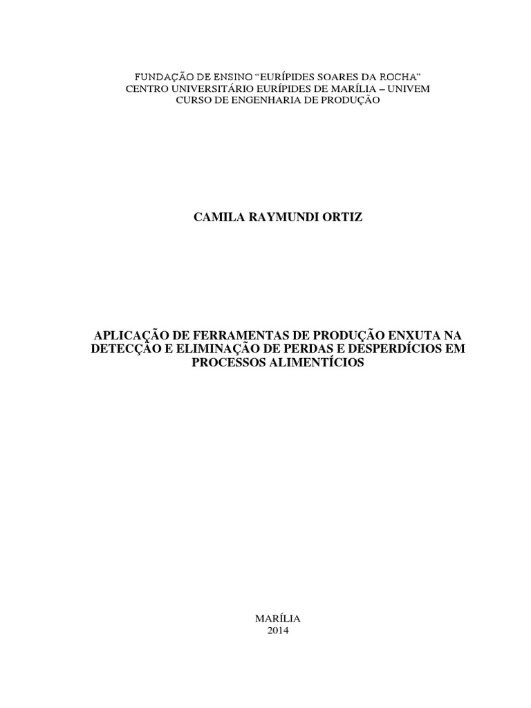 ORTIZ, Camila Raymundi. Aplicao de Ferramentas de Produo Enxuta na Deteco e