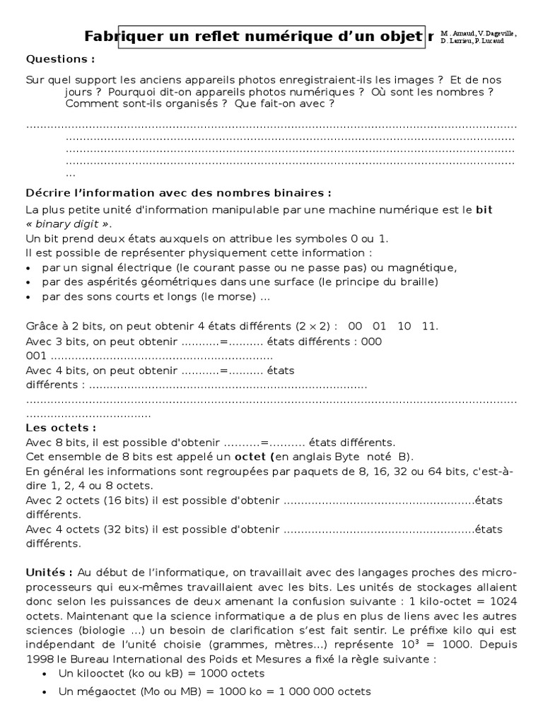 octets. Maintenant que la science informatique a de plus en plus de liens avec les autres