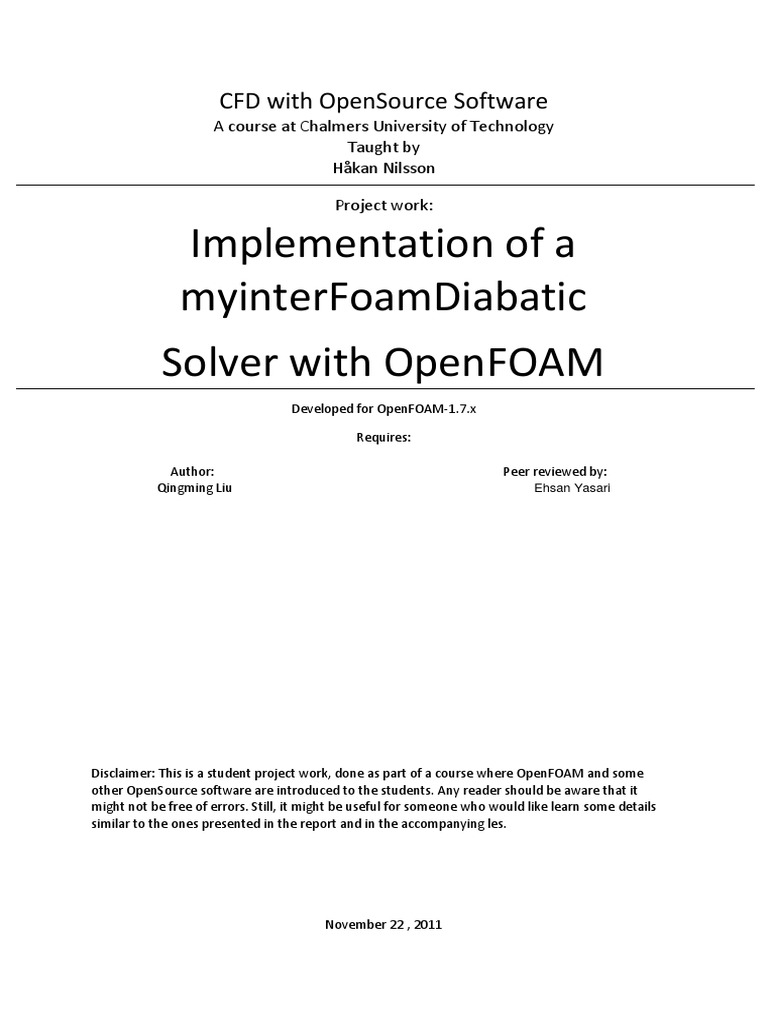 which can be applied for isothermal 2 incompressible flow calculation. However, as the other multiphase solvers in OpenFOAM, it cannot be used to simulate non-isothermal phenomena due to the lack