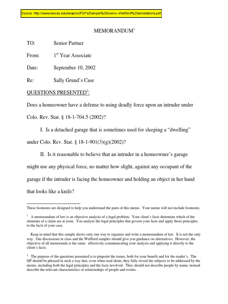 Keep in mind that this sample shows only one way to organize and write a memorandum of law. It is not the only