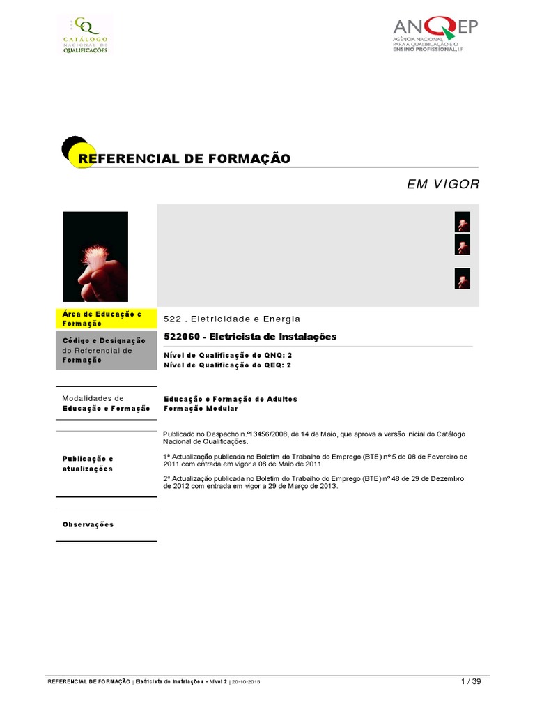 REFERENCIALDEFORMAO| EletricistadeInstalaesNvel2 | 20-10-2015