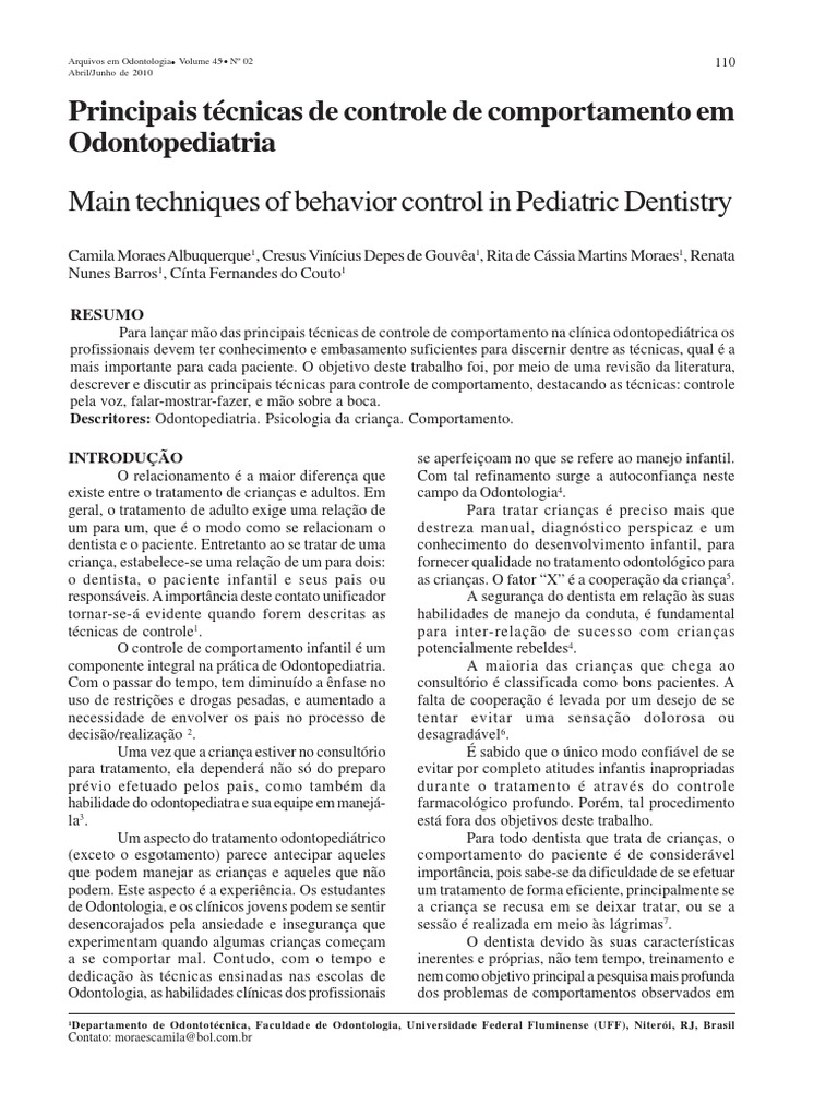 Para lanar mo das principais tcnicas de controle de comportamento na clnica odontopeditrica os