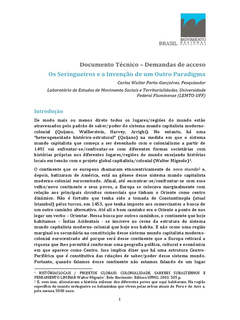 mundo capitalista moderno-colonial que nos governa. Todavia, os seringueiros do