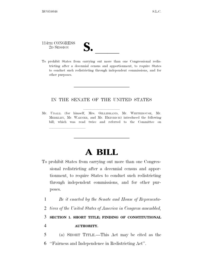To prohibit States from carrying out more than one Congres-sional redistricting after a decennial census and appor-tionment, to require States to conduct such redistricting through independent commissions, and for other pur-poses.