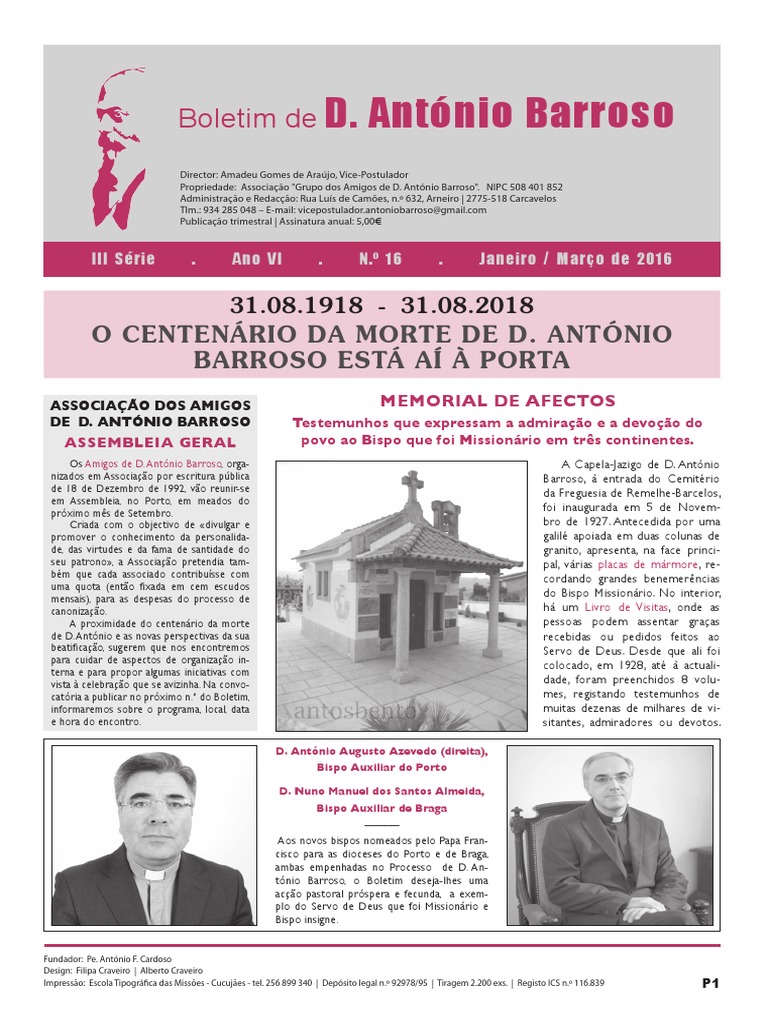 Para transferncias bancrias que tenham a bondade de fazer para apoio Causa da Canonizao de D. Antnio Barroso e para as despesas deste Boletim, informamos que a conta em nome do