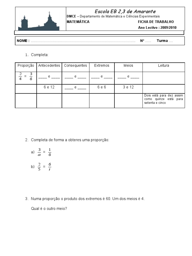 Proporção Antecedentes Consequentes Extremos Meios Leitura