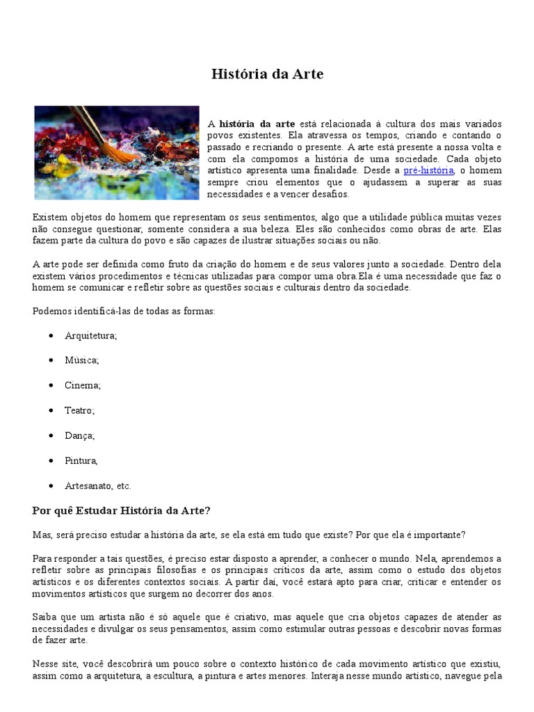 assim como a arquitetura, a escultura, a pintura e artes menores. Interaja nesse mundo artstico, navegue pela