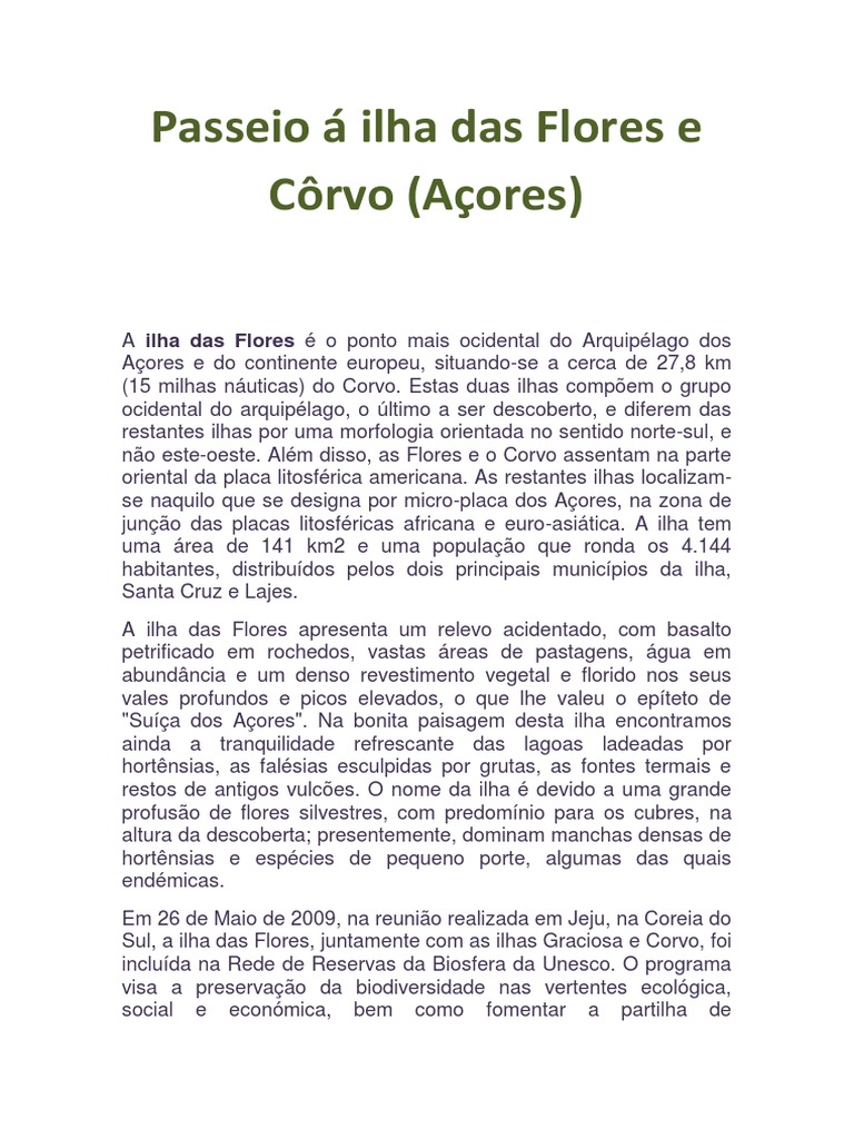 Sul, a ilha das Flores, juntamente com as ilhas Graciosa e Corvo, foi