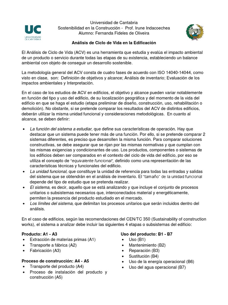 interreg-sudoe. la definición de nuevos programas de I+D+i y de normativas de eco eficiencia. formación de ozono troposférico y agotamiento de recursos abióticos (elementos y fósiles). la implantación de políticas de ayudas a la construcción y a la rehabilitación. como consecuencia directa de la reducción del impacto ambiental.Fin de vida: C1 .e3ecodesign. BEES (NIST. Francia). consultores. así como posibles reducciones de las tasas e impuestos. el establecimiento de estrategias y políticas fiscales para gestionar los residuos de la construcción y el transporte de materiales. Algunas herramientas son desarrolladas específicamente para su aplicación en el sector de la edificación. por ejemplo. EUA).com/analisis-de-ciclo-de-vida http://4. planificadores urbanísticos o promotores inmobiliarios. la comparación de distintas opciones de diseño y de productos concretos. incluyen módulos pre-determinados para describir los principales componentes del edificio. de manera que las cuatro fases de las que consta están interrelacionadas.elecs2013.es/impacto_ambiental_analisis_ciclo_de_vida. como son fabricantes de productos de la construcción. que dependiendo de las políticas nacionales o regionales. Alemania) o Elodie (CSTB.org/wp-content/uploads/2014/01/ACV-edificios-comerciales.pdf http://www. ingenieros. Los potenciales usuarios del ACV en el sector de la edificación lo forman un grupo muy variado de actores.C4 Deconstrucción y derribo (C1) Transporte (C2) Gestión de residuos para reutilización.htm .pdf http://centromariomolina. evaluación de los impactos ambientales y interpretación los procedimientos son hechos como expuesto en clase. la selección adecuada de proveedores de materiales constructivos y equipos energéticos.pdf http://gestion. Bibliografía: http://www. hay que definir también las categorías y metodologías de evaluación de impacto que se van a emplear en el estudio. Son ejemplos de este tipo de herramientas. Además. permitiendo así que expertos no usuarios en la metodología del ACV puedan aplicarla. La aplicación de la metodología de ACV en edificios conlleva innumerables oportunidades para el sector de la construcción al facilitar la toma de decisiones por parte de las empresas de la construcción.cype. En las fases de análisis de inventario.ufpr.eu/contenido-dinamico/libreria-ficheros/B111DBEF-C019-2BB8-348B86B2596FD140. organizaciones gubernamentales y no gubernamentales con vistas a la planificación de estrategias de eco eficiencia en la edificación. eutrofización. como por ejemplo: la identificación de oportunidades para mejorar los impactos medioambientales en el sector de la construcción considerando el ciclo de vida completo de los edificios. de manera que. las categorías de impacto recomendadas por CEN/TC 350 para llevar a cabo estudios de ACV en edificios son destrucción de la capa de ozono estratosférico.br/wp-content/uploads/anais/2011/2011_artigo_029. SBS (Fraunhofer. acidificación de la tierra y el agua. entre otros. gestores energéticos de la administración local y autonómica. podría permitir la obtención de ayudas y subvenciones. recuperación y reciclaje (C3) Eliminación final (C4) Dentro del alcance. arquitectos. los estudios de ACV pueden facilitar la consecución de un etiquetado medioambiental de los edificios. La metodología del ACV tiene un carácter dinámico o iterativo.
