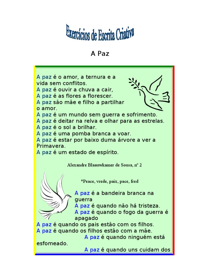 A paz é viver, com tranquilidade e alegria, a vida.