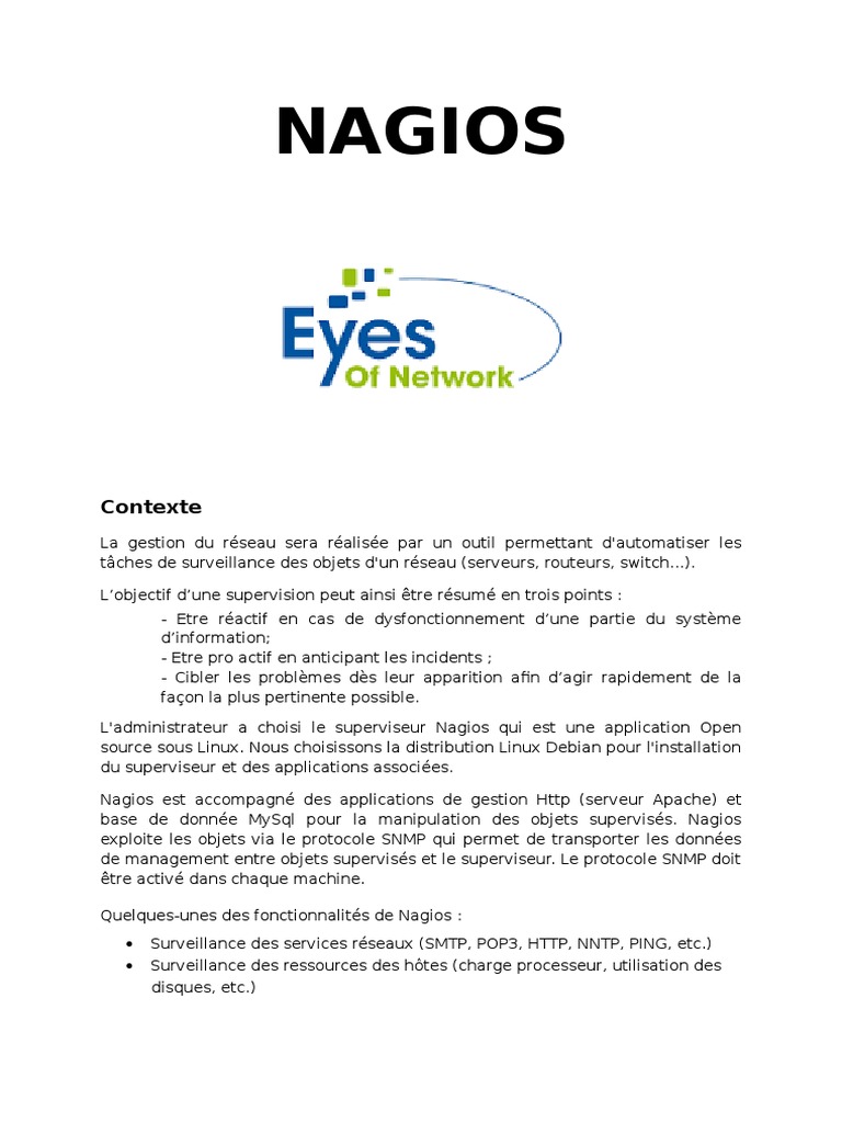 Nagios sera exploit via l'application graphique Centreon qui fournit une interface