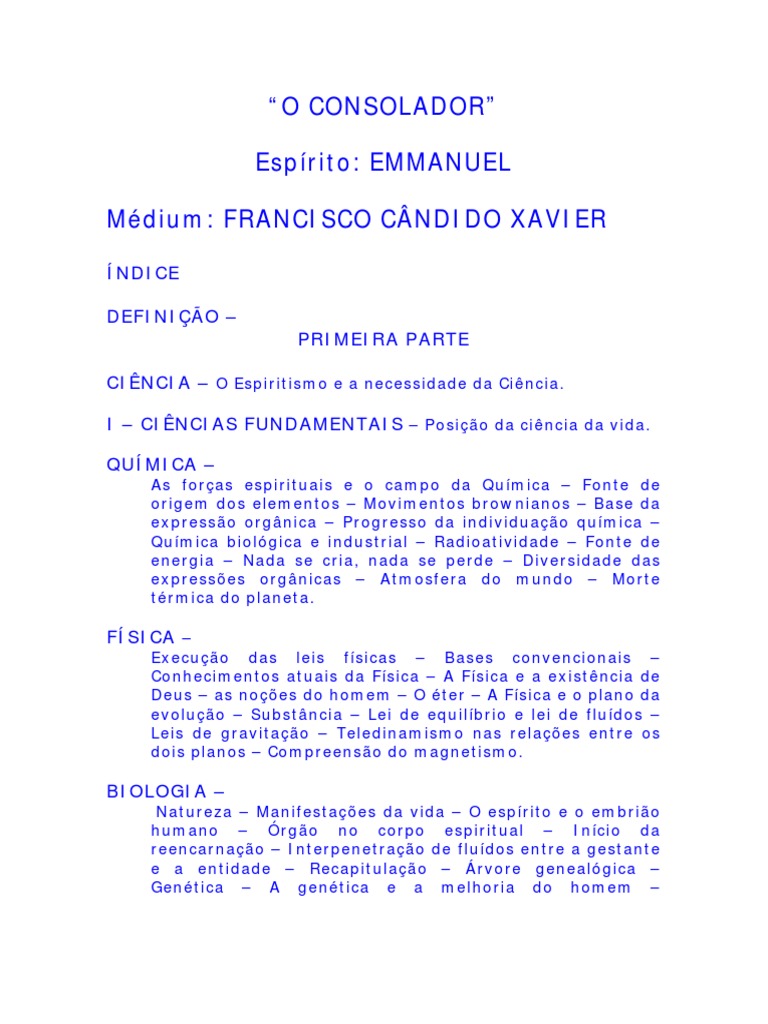 Execução das leis físicas – Bases convencionais – Conhecimentos atuais da Física – A Física e a existência de Deus – as noções do homem – O éter – A Física e o plano da evolução – Substância – Lei de equilíbrio e lei de fluídos – Leis de gravitação – Teledinamismo nas relações entre os dois planos – Compreensão do magnetismo.