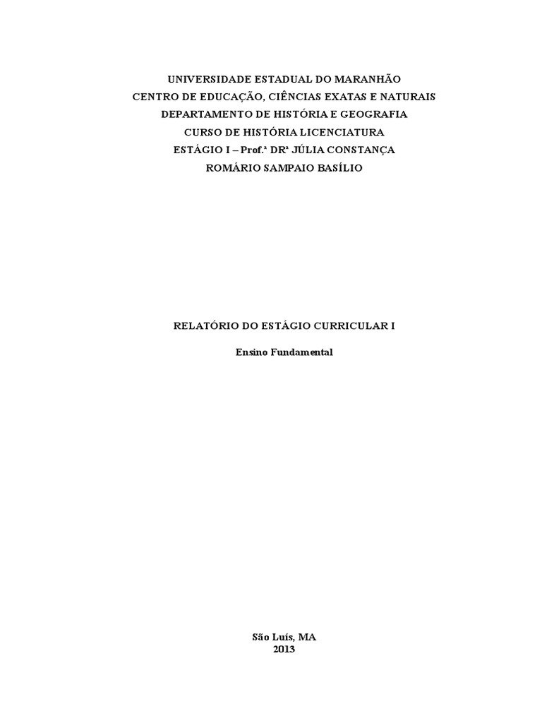 Perodo do Estgio: maio/junho de 2013