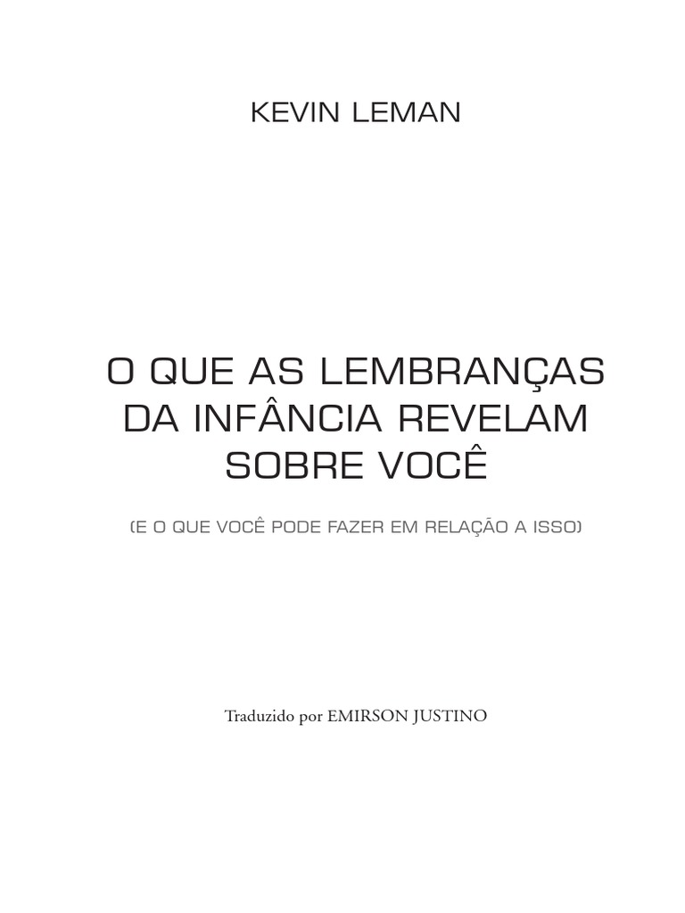 O que está trancafiado em sua mente? Quais são suas lembranças mais antigas da infância? Em todos os meus anos de prática como psicólogo e em conversas realizadas em seminários. sobre experiências.. Porque essas respostas nos permitem enxergar por trás de todas as fachadas e defesas. Sabe. as respostas que recebo de crianças de seis anos de idade ou de CEOs com salários de seis dígitos revelam mais sobre a pessoa que responde do que a resposta a qualquer outra pergunta. Sondei pais sobre os maiores desafios na criação dos filhos.indb 11 14/01/2011 08:21:15 ... BEM NO PASSADO.INTRODUÇÃO PENSE NO PASSADO. São uma chave mestra que destrava todo tipo de mecanismo de proteção. Nem mesmo todo dinheiro do mundo pode comprar aquilo que se é capaz de aprender com as lembranças da infância. do mesmo modo que passar anos tentando descobrir-se não vai revelar o que você consegue aprender vasculhando essas lembranças. você perguntaria. fiz milhares de perguntas às pessoas. chegando diretamente ao cerne daquilo que a pessoa é. Mas. de todas as perguntas que fiz nessas interações. “Mas por quê?”. família. O que as lembranças da infância revelam sobre você_final. nenhuma outra fez as pessoas pensar tanto quanto aquela sobre as primeiras lembranças da infância. relacionamentos. conversei com mandachuva dos negócios sobre a psicologia empresarial e ouvi o suficiente sobre a vida sexual de casais para fazer corar o rosto de qualquer pessoa com as mais diversas tonalidades..