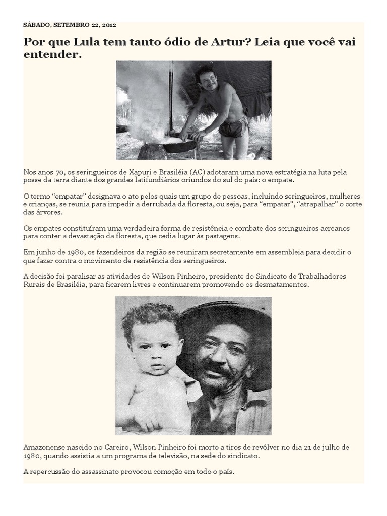 Por que Lula tem tanto dio de Artur? Leia que voc vai