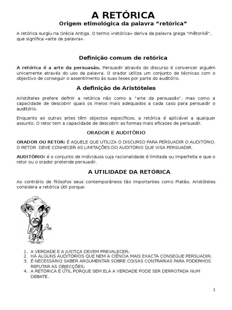 Aristteles prefere definir a retrica no como a arte da persuaso, mas como a