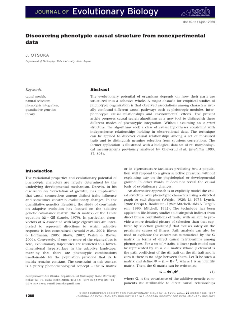 2016 EUROPEAN SOCIETY FOR EVOLUTIONARY BIOLOGY. J. EVOL. BIOL. 29 (2016) 12681277