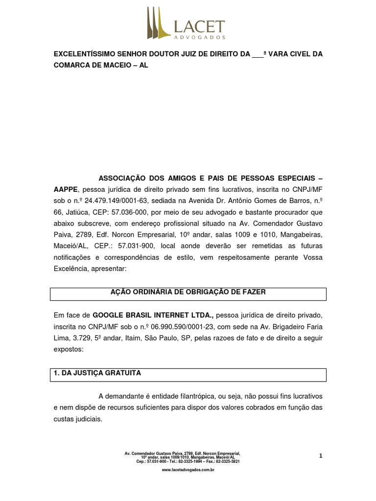 Em face de GOOGLE BRASIL INTERNET LTDA., pessoa jurdica de direito privado,