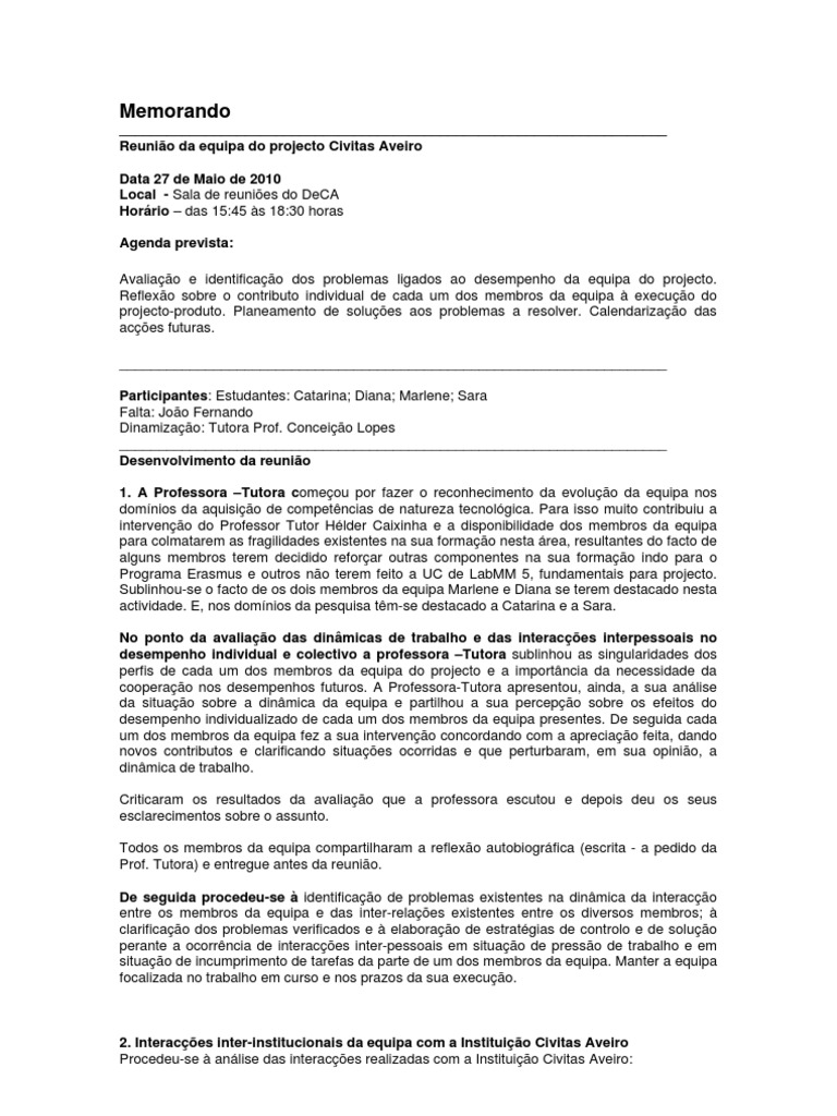 2. Interacções inter-institucionais da equipa com a Instituição Civitas Aveiro