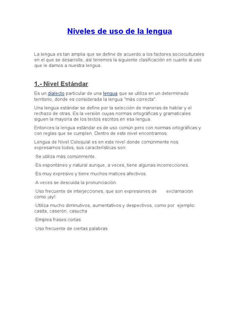 Lengua de Nivel Coloquial es en este nivel donde comúnmente nos