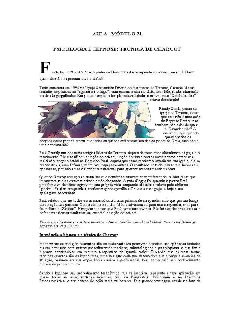 AULA | MÓDULO 31 PSICOLOGIA E HIPNOSE: TÉCNICA DE CHARCOT