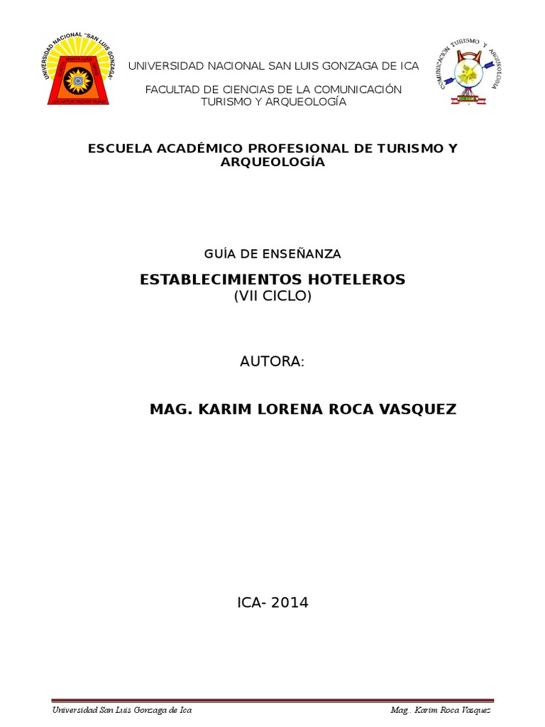 en el que obligatoriamente se inscribirá el nombre completo del huésped.. las normas del propio establecimiento de hospedaje y las disposiciones contenidas en el presente Reglamento. el Órgano que ésta designe para tal efecto. nacionalidad. a efecto de cobrar. la tarifa respectiva por el alojamiento. Día hotelero: Período de 24 horas dentro del cual el huésped podrá permanecer en uso de la habitación. sin recargo. sexo. funcionamiento. presentación. por la sola inscripción y firma en el Registro de Huéspedes. CAPÍTULO VII DEL RÉGIMEN DE ATENCIÓN Y REGISTRO DE HUÉSPEDES Artículo 29º. el número de la habitación asignada y la tarifa correspondiente con indicación de los impuestos y sobrecargas que se cobren. y en el caso de la Municipalidad Metropolitana de Lima. se regula por el derecho común. fecha de ingreso.Competencia Los Órganos Regionales Competentes para la aplicación del presente Reglamento son las Direcciones Regionales de Comercio Exterior y Turismo de los Gobiernos Regionales..Condiciones de las instalaciones Las instalaciones de los establecimientos de hospedaje deberán estar en óptimas condiciones de conservación. fecha de salida.Contrato de Hospedaje: Es la relación jurídica que se genera entre el huésped y el establecimiento de hospedaje. de modo que permita su uso inmediato y la prestación adecuada de los servicios ofrecidos desde el día que inicia sus Universidad San Luis Gonzaga de Ica Mag. dentro del ámbito de su competencia administrativa.. limpieza y seguridad. documento de identidad. de acuerdo al registro de ingreso y la hora límite de salida fijada por el establecimiento de hospedaje. Registro de Huéspedes: Registro llevado por el establecimiento de hospedaje. DE LA COMPETENCIA Y FUNCIONES Artículo 4º. Karim Roca Vasquez . sea que estén o no incluidos en la tarifa. en fichas o libros.