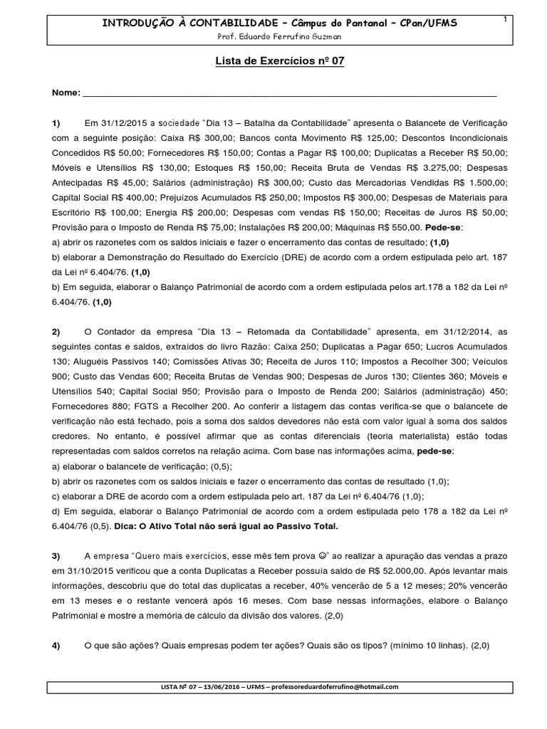 a) elaborar o balancete de verificao; (0,5);