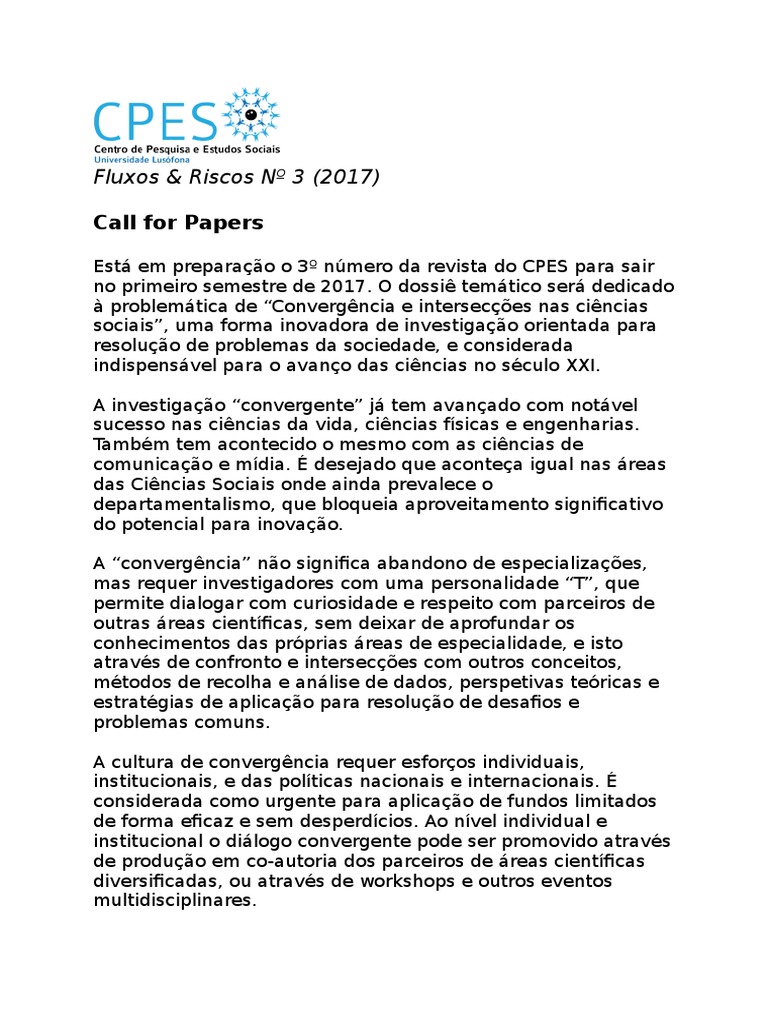 this Call for Papers, challenging the researchers of CPES (Centre of Social