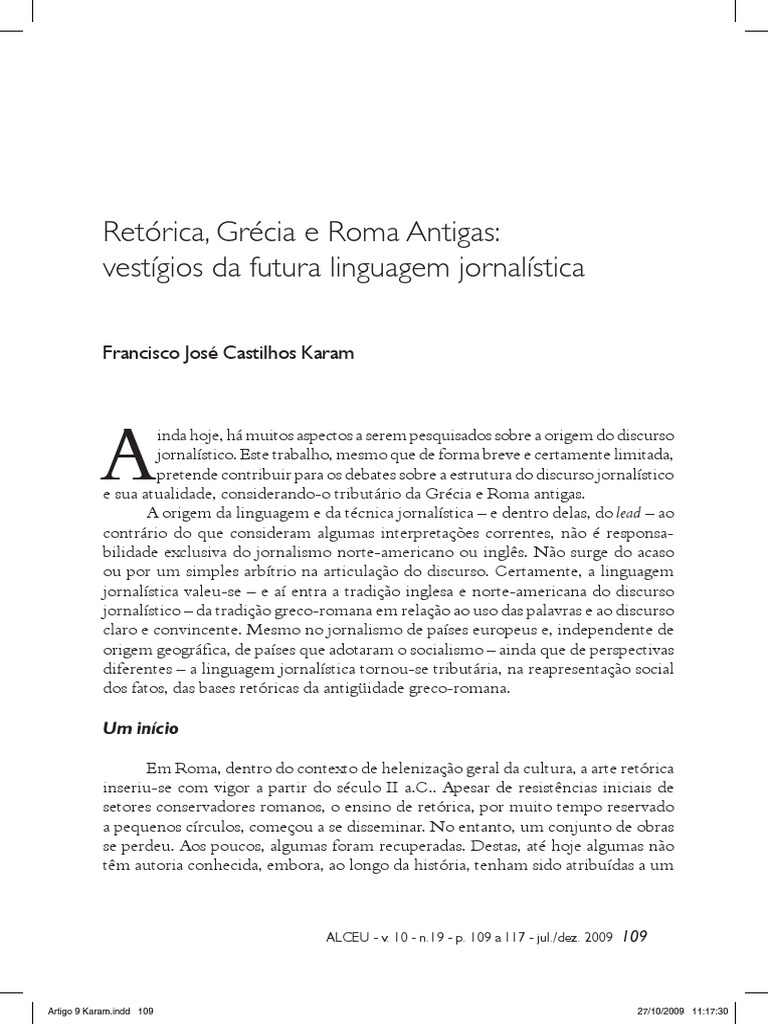 A especificidade da linguagem jornalstica, tributria da antigidade greco-romano