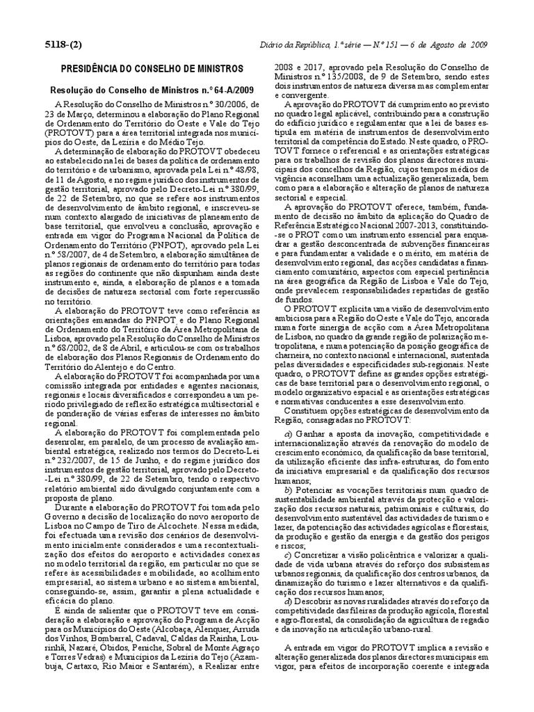 52º e 53º do PDM de BENAVENTE (RESOLUÇÃO DO CONSELHO DE MINISTROS n. iii. Artigo 63º n.º 3 alínea b).º 177/97.º 119/98.º 4.º 180/95.º 51/95. xviii.º 10/97.º 1 e 2 e Artigo 48º n. de 26 de Janeiro). Artigo 30º corpo de artigo e alíneas d) e e) do PDM de SOBRAL MONTE AGRAÇO (RESOLUÇÃO DO CONSELHO DE MINISTROS n. de 24 de Agosto e alterações introduzidas pela Declaração n.2. de 15 de Novembro.º2. de 30 de Dezembro.º 189.º 2. Artigo 52º.º3 alínea a). xxiii. Artigo 60º n. e respectivos sub-pontos. Artigo 37º e Artigo 38º do PDM de CALDAS DA RAINHA (RESOLUÇÃO DO CONSELHO DE MINISTROS n.º 1.5 do PDM de LOURINHÃ (RESOLUÇÃO DO CONSELHO DE MINISTROS n. Artigo 51º.1. Artigo 37º n.3 do PDM de PENICHE (RESOLUÇÃO DO CONSELHO DE MINISTROS n.º 116/95. de 26 de Outubro). 4. Artigo 43º n. de 14 de Fevereiro. Artigo 40º n.º 124/96.ª série — N. Artigo 26º. Artigo 23º n.º 7 do PDM de ALPIARÇA (RESOLUÇÃO DO CONSELHO DE MINISTROS n. alterada pela RESOLUÇÃO DO CONSELHO DE MINISTROS n. 4.º 3 do PDM de TOMAR (RESOLUÇÃO DO CONSELHO DE MINISTROS n. de 01 de Junho).º 1 e2 do PDM de BOMBARRAL (RESOLUÇÃO DO CONSELHO DE MINISTROS n. Artigo 46º alíneas a) a f). alterada pela RESOLUÇÃO DO CONSELHO DE MINISTROS n. vii.1.º 16/97. xv.º 3.º 131/99. alterada pela RESOLUÇÃO DO CONSELHO DE MINISTROS n.º 7 do PDM de CHAMUSCA (RESOLUÇÃO DO CONSELHO DE MINISTROS n. Artigo 51º e Artigo 52º n.º5 e Artigo 64º n. de 27 de Agosto).º 94/2002. xx. Artigo 41º.2. Artigo 57º n.º 3/97.os 1. com excepção do turismo no espaço rural e do turismo de habitação e do turismo de habitação: i) Artigo 14º alíneas a)e b) e Artigo 25º n.º 100/94. Artigo 28º n.º 13/95. de 09 de Fevereiro). alterada pela RESOLUÇÃO DO CONSELHO DE MINISTROS n.º5 do PDM de ÓBIDOS (RESOLUÇÃO DO CONSELHO DE MINISTROS n.º 151 — 6 de Agosto de 2009 xxviii) Artigo 29º n. 2. de 17 de Maio. Artigo 41º n. xxi. Artigo 48º n. 11. de 20 de Dezembro). de 08 de Outubro. Artigo 6º n. alterada pela RESOLUÇÃO DO CONSELHO DE MINISTROS n.º2 alínea e). de 29 de Dezembro). de 28 de Janeiro). 3. x. Artigo 50º n. b) Disposições que admitam a construção de empreendimentos turísticos fora das áreas urbanas e urbanizáveis que correspondem a aglomerados urbanos. xiii.1. Artigo 56º n. n. Artigo 32º n.º2 do PDM de CADAVAL (RESOLUÇÃO DO CONSELHO DE MINISTROS n. xi.os 11. Artigo 29º n. Artigo 60º n.Diário da República. Artigo 40º.º2.º 1.º 1/94. do PDM de SALVATERRA DE MAGOS (RESOLUÇÃO DO CONSELHO DE MINISTROS n. de 01 de Julho).º 2 e n.º 101/2002.º 1 alínea d) e n.º 2 e Artigo 39º nºs 1 a 8 do PDM de AZAMBUJA (RESOLUÇÃO DO CONSELHO DE MINISTROS n.º 164/95. Artigo 18º. Artigo 51º.º 148-A/2002.os 1 a 5. de 19 de Abril). n. 11.º 181/95.º 3 alínea d).º 5. xii.º 13/95.º 132/97. Artigo 50º e Artigo 51º do PDM de CORUCHE (RESOLUÇÃO DO CONSELHO DE MINISTROS n.º2 alínea a). Artigo 37º n. 1. xix.º 11 do PDM de ALMEIRIM (RESOLUÇÃO DO CONSELHO DE MINISTROS n.º 17/97. Artigo 36º n. xvii. Artigo 42º. de 27 de Outubro). .º 2 alínea a). iv.º 4.º 5/98.º 2 alínea a). Artigo 47º n.os 1 a 5 do PDM de OURÉM (RESOLUÇÃO DO CONSELHO DE MINISTROS n.º2. de 12 de Janeiro).º 1 a 5 do PDM de ALENQUER (RESOLUÇÃO DO CONSELHO DE MINISTROS n. Artigo 38º n. alterada pela RESOLUÇÃO DO CONSELHO DE MINISTROS n.2 alínea d) e n.º 21/ 88. Artigo 32º n. de 29 de Setembro de 2006). Artigo 31º n. de 05 de Fevereiro.º 4.º 187/96.os 1 a 4 do PDM de ABRANTES (RESOLUÇÃO DO CONSELHO DE MINISTROS n. de 07 de Dezembro). publicada em DR 2ª Séria n. de 13 de Dezembro).º 2 alínea d) do PDM de CONSTÂNCIA (RESOLUÇÃO DO CONSELHO DE MINISTROS n.º 2. de 30 de Dezembro). Artigo 26º n. de 28 de Novembro). alterada pela RESOLUÇÃO DO CONSELHO DE MINISTROS n. de 18 de Junho). Artigo 15º n. xxix) Artigo 26º n. Artigo 21º n. v. i. ix.º 2 alínea d) e Artigo 40º n. Artigo 49º n.º 7/97.º 175/95. 3.º 48/93. Artigo 25º. Artigo 45º. Artigo 45º. de 12 de Agosto).º 1 e2 do PDM de CARTAXO (RESOLUÇÃO DO CONSELHO DE MINISTROS n. de 25 de Outubro).2 e Artigo 70º n.º4.º 2 alínea a). de 7 de Janeiro).º 3 alínea b) do PLANO ORDENAMENTO DO PARQUE NATURAL SERRAS D’AIRE E CANDEEIROS (Portaria n.º 14/95. de 21 de Janeiro).os 4.2.2 e 11. Artigo 48º n. Artigo 50º n. alterada pela RESOLUÇÃO DO CONSELHO DE MINISTROS n. Artigo 53º e Artigo 54º do PDM de FERREIRA DO ZÊZERE (RESOLUÇÃO DO CONSELHO DE MINISTROS n. de 22 de Janeiro). xxii. xxx) Artigo 31º.1.º 102/97.º 4 do PDM de ALCOBAÇA (RESOLUÇÃO DO CONSELHO DE MINISTROS n. xxxii) Artigo 4º n.os 1 e 2.º 5. Artigo 39º n. 2 e 3 e Artigo 17º n.º 145/2000.º 1 alínea e). Artigo 44º do PDM de TORRES NOVAS (RESOLUÇÃO DO CONSELHO DE MINISTROS n.º 147/2006 da DGOTDU. Artigo 39º. Artigo 24º.º 111/2000. Artigo 19º alínea a) do PDM de VILA NOVA BARQUINHA (RESOLUÇÃO DO CONSELHO DE MINISTROS n. Artigo 27º n.5. xvi. Artigo 27º n. 11.º 8/2001.º 1 e 2 e Artigo 61º n. Artigo 18º n. Artigo 25º. de 09/10). ii. de 16 de Janeiro).º 47/95.º 4 e n. 11. Artigo 43º n. de 16 de Fevereiro.º 90/2001 de 30/07). 5118-(121) viii.º 1 alíneas a) e b).2.º 1 a 4 do PDM de ENTRONCAMENTO (RESOLUÇÃO DO CONSELHO DE MINISTROS n. de 11/01).2 e 3. de 14 de Fevereiro.º 4 alínea a) do PDM de ARRUDA DOS VINHOS (RESOLUÇÃO DO CONSELHO DE MINISTROS n. 3. n. vi. xiv. xxxi) Artigo 16º n. Artigo 31º n. de 27 de Dezembro).º 7 e Artigo 44º n. Artigo 32º n.º 139/95. de 01 de Junho).º 9/2004.os 1 a 5 do PDM de NAZARÉ (RESOLUÇÃO DO CONSELHO DE MINISTROS n.os 1 a 4. Artigo 23º n.º 170/95.3 do PDM de RIO MAIOR (RESOLUÇÃO DO CONSELHO DE MINISTROS n.