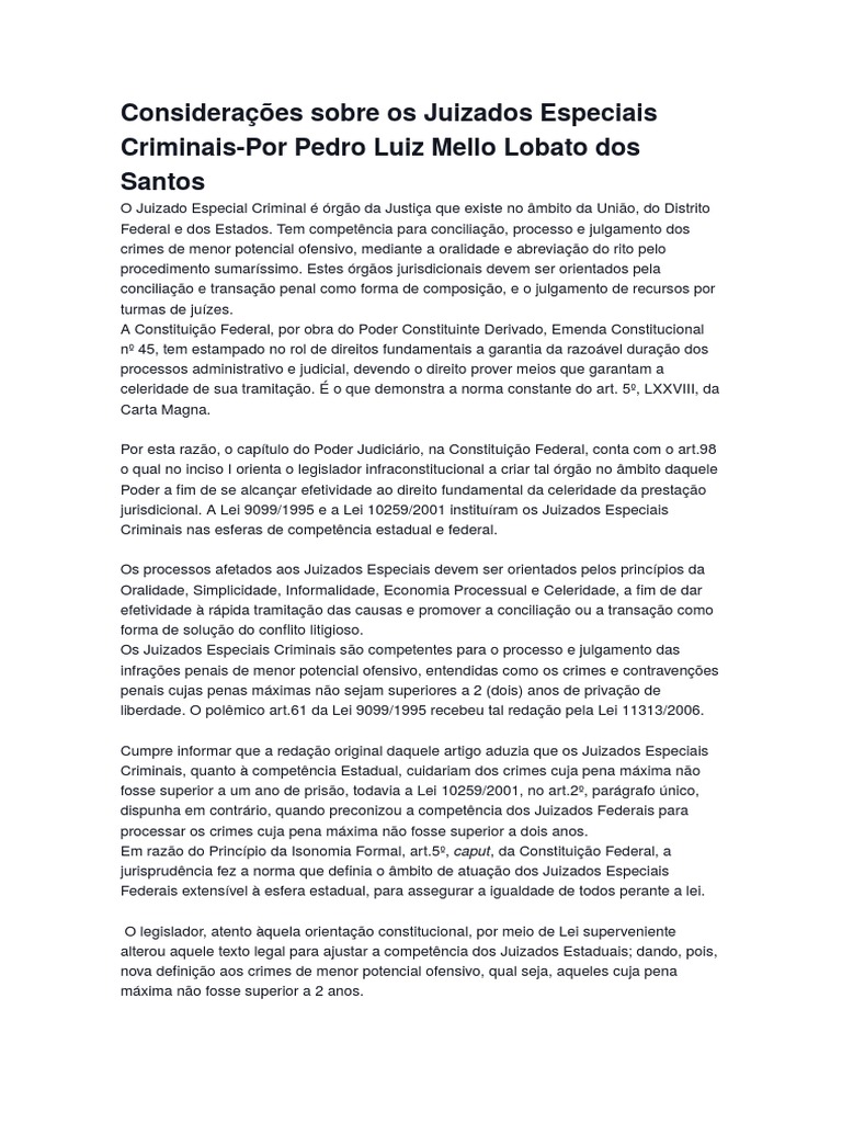 Cumpre informar que a redação original daquele artigo aduzia que os Juizados Especiais
