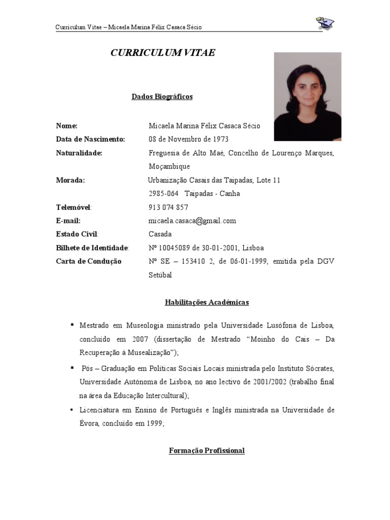Curriculum Vitae – Micaela Marina Félix Casaca Sécio