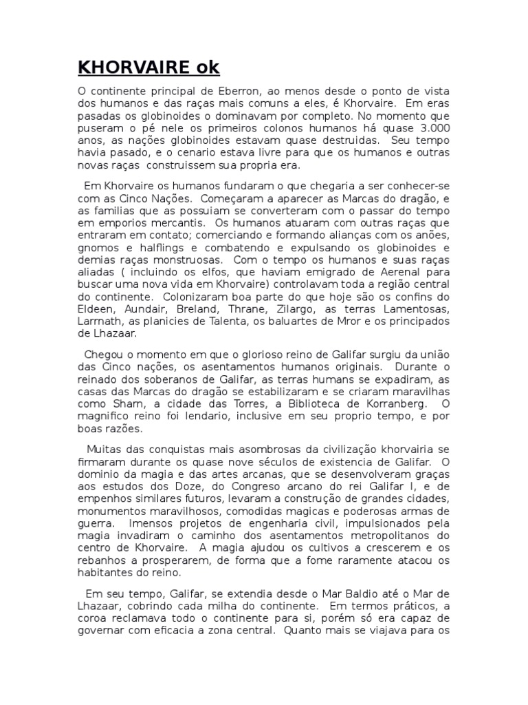 dos humanos e das raas mais comuns a eles, Khorvaire. Em eras