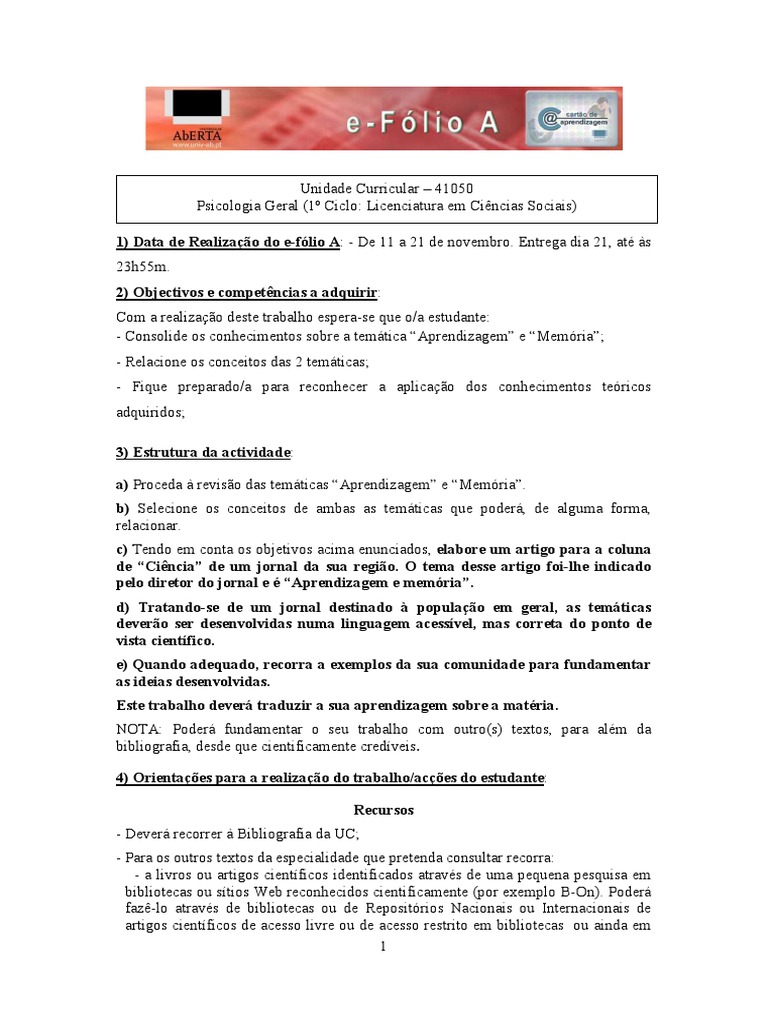 1) Data de Realizao do e-flio A: - De 11 a 21 de novembro. Entrega dia 21, at s