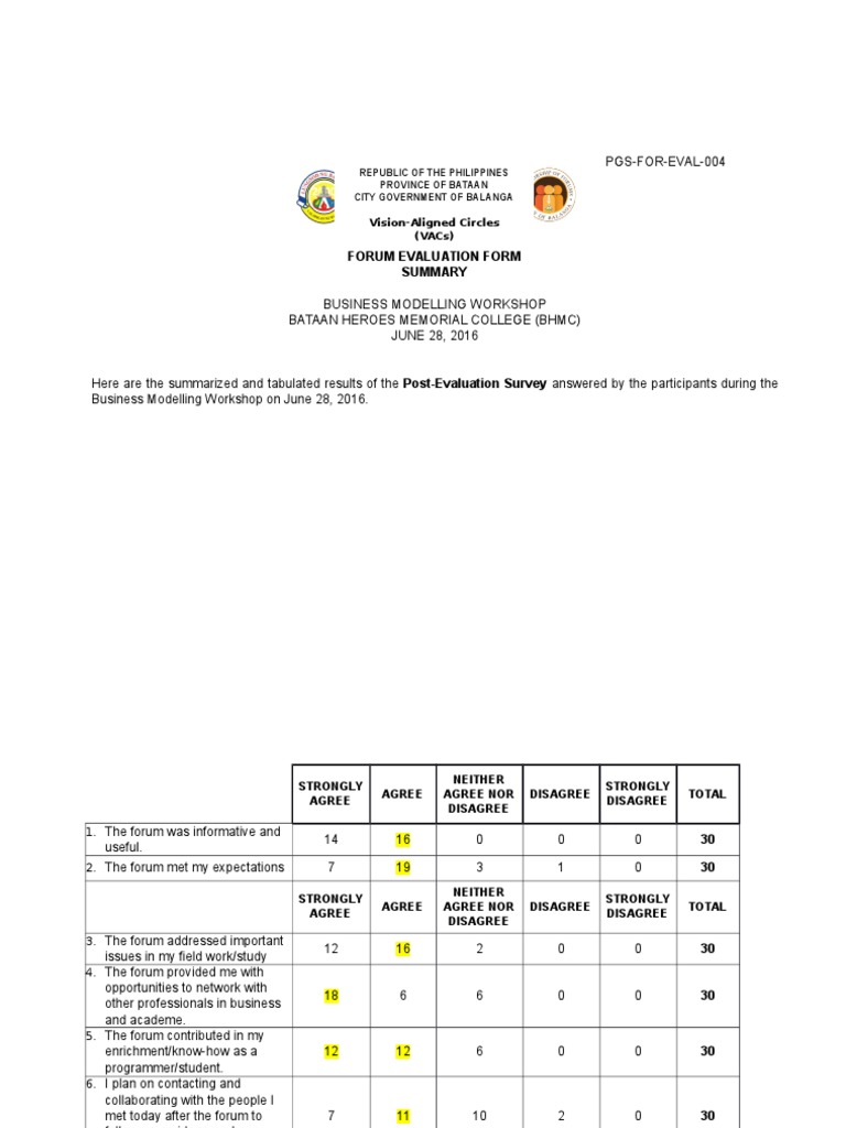Here are the summarized and tabulated results of the Post-Evaluation Survey answered by the participants during the