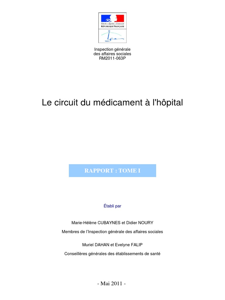 Le Circuit Du Médicament À L'hôpital: Rapport: Tome I