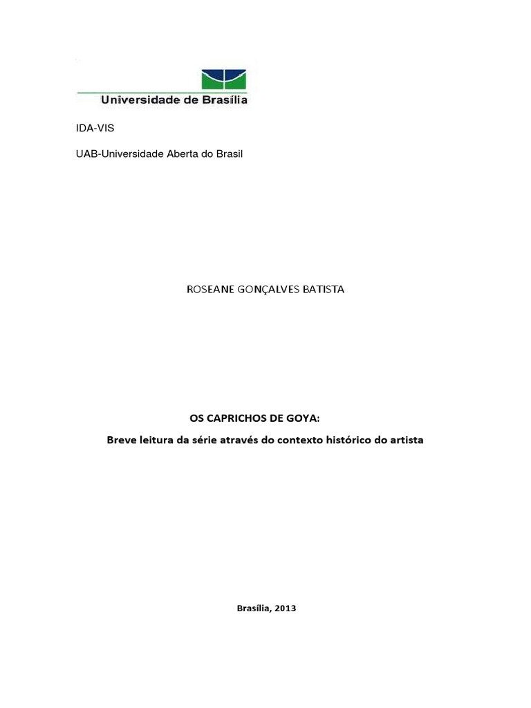 BATISTA, Roseane Gonalves, Os caprichos de Goya:breve leitura da srie