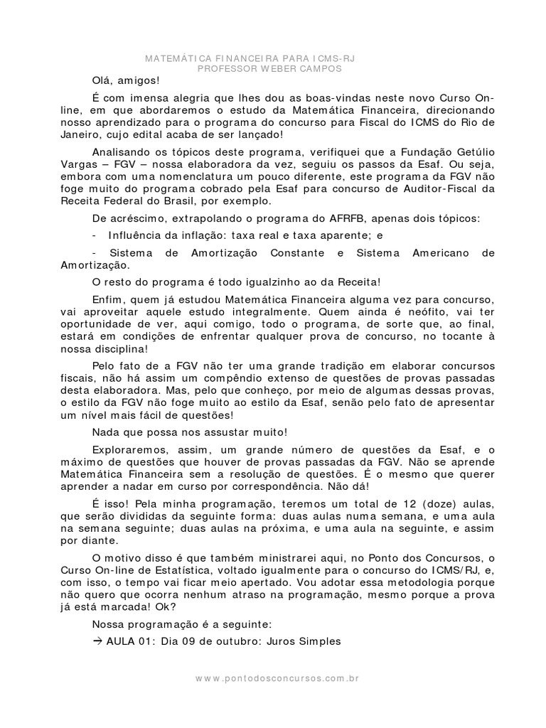 CURSO ONLINE MATEMTICA FINANCEIRA PARA ICMS/RJ 2007 1