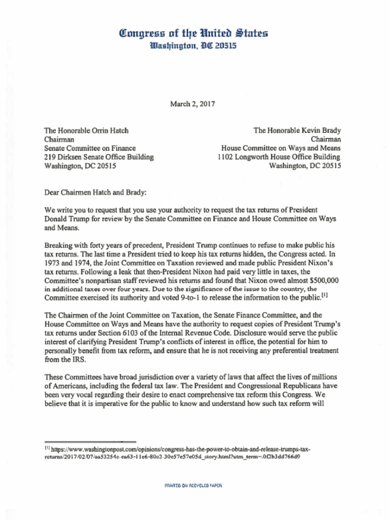Pascrell, 163 Bipartisan Colleagues Call on Congress to Request Trump Tax Returns