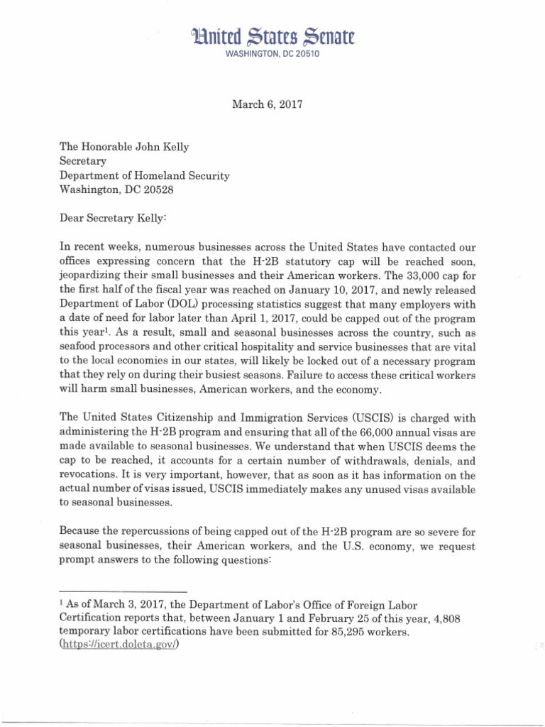 H2B Letter to Secretary Kelly March 2017