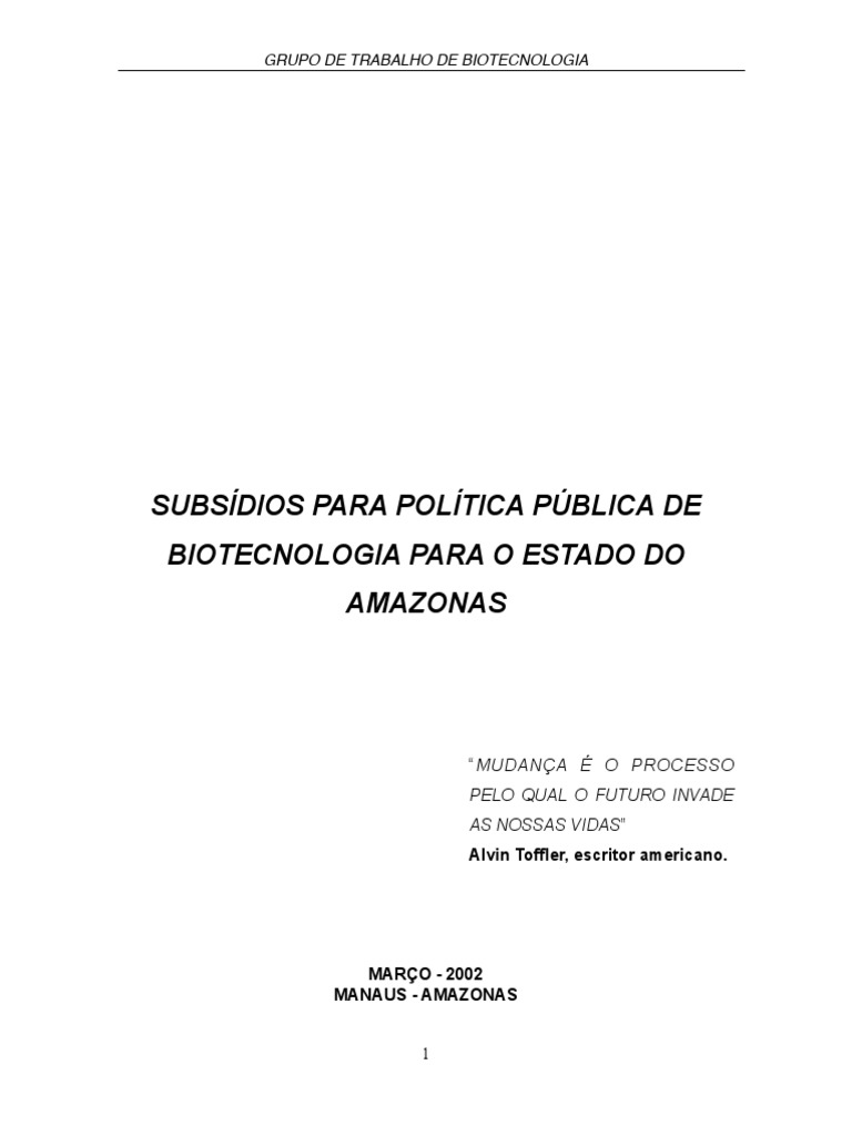 POLTICA PBLICA DE BIOTECNOLOGIA PARA O ESTADO DO AMAZONAS, se traduzir no anseio de um futuro