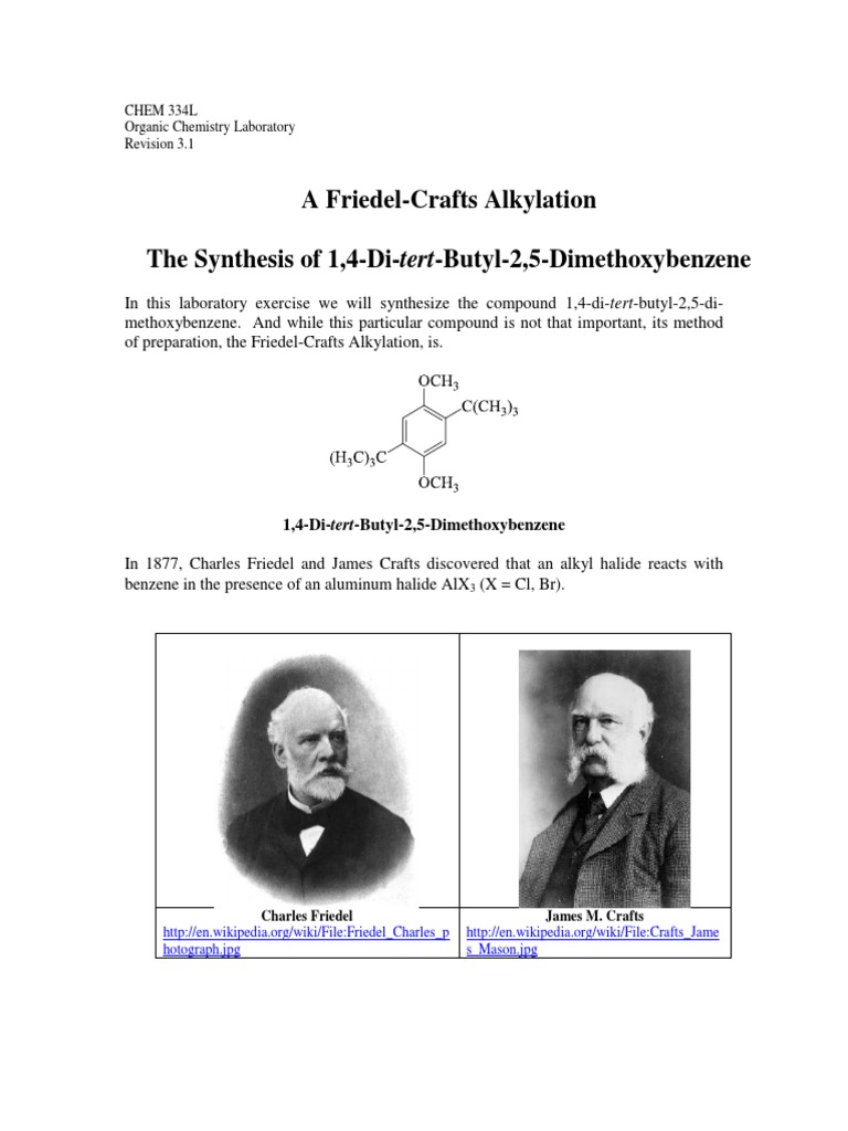 In this laboratory exercise we will synthesize the compound 1,4-di-tert-butyl-2,5-di-