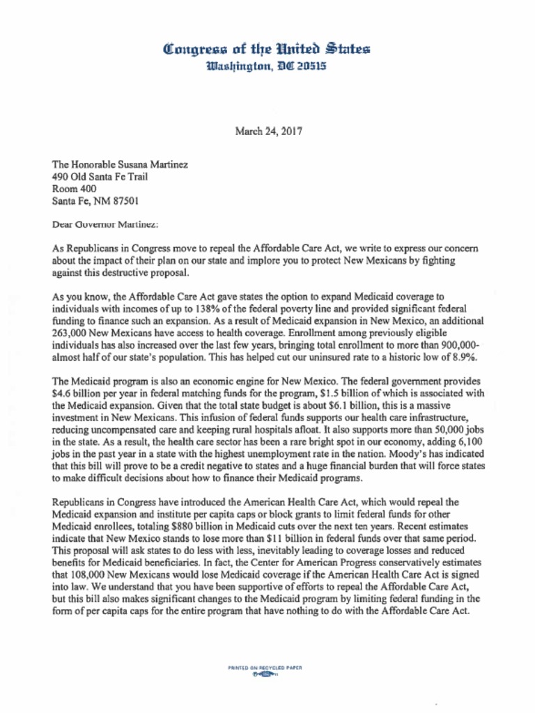 NM Democrats' Letter to Governor Martinez on ACA