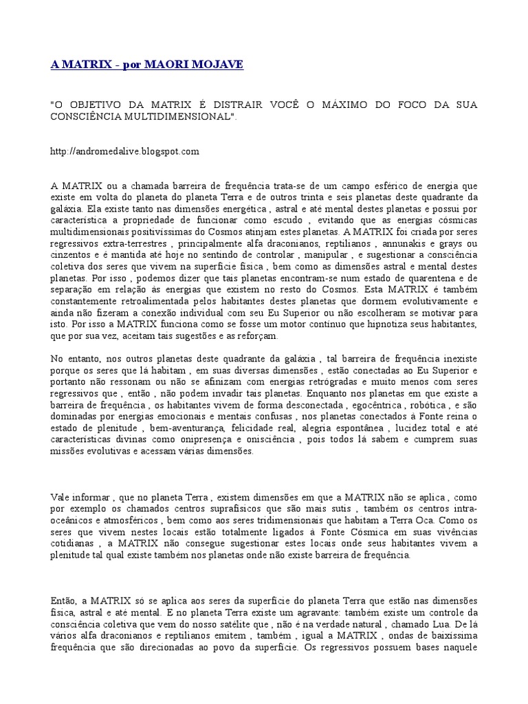 Ento, a MATRIX s se aplica aos seres da superfcie do planeta Terra que esto nas dimenses