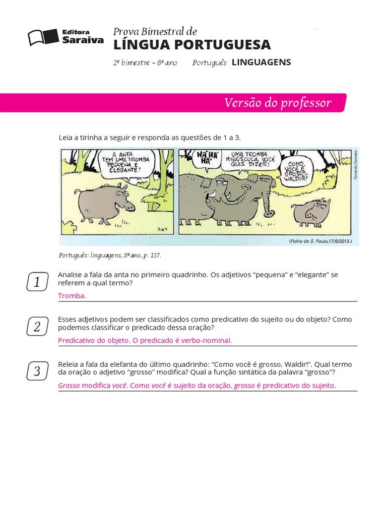Portugus LINGUAGENS Prova Bimestral de LNGUA PORTUGUESA 2 bimestre 8 ano p. 3