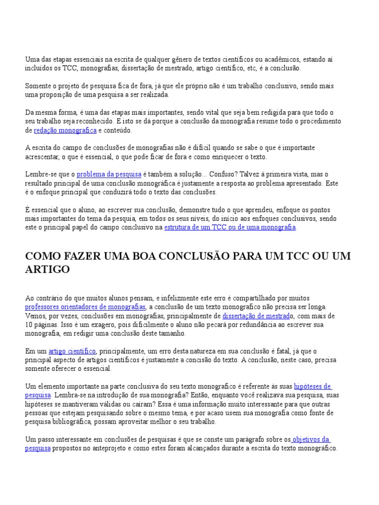 A concluso de uma monografia ou de um TCC ou no muito mais do que voc imaginava? recursos, ou