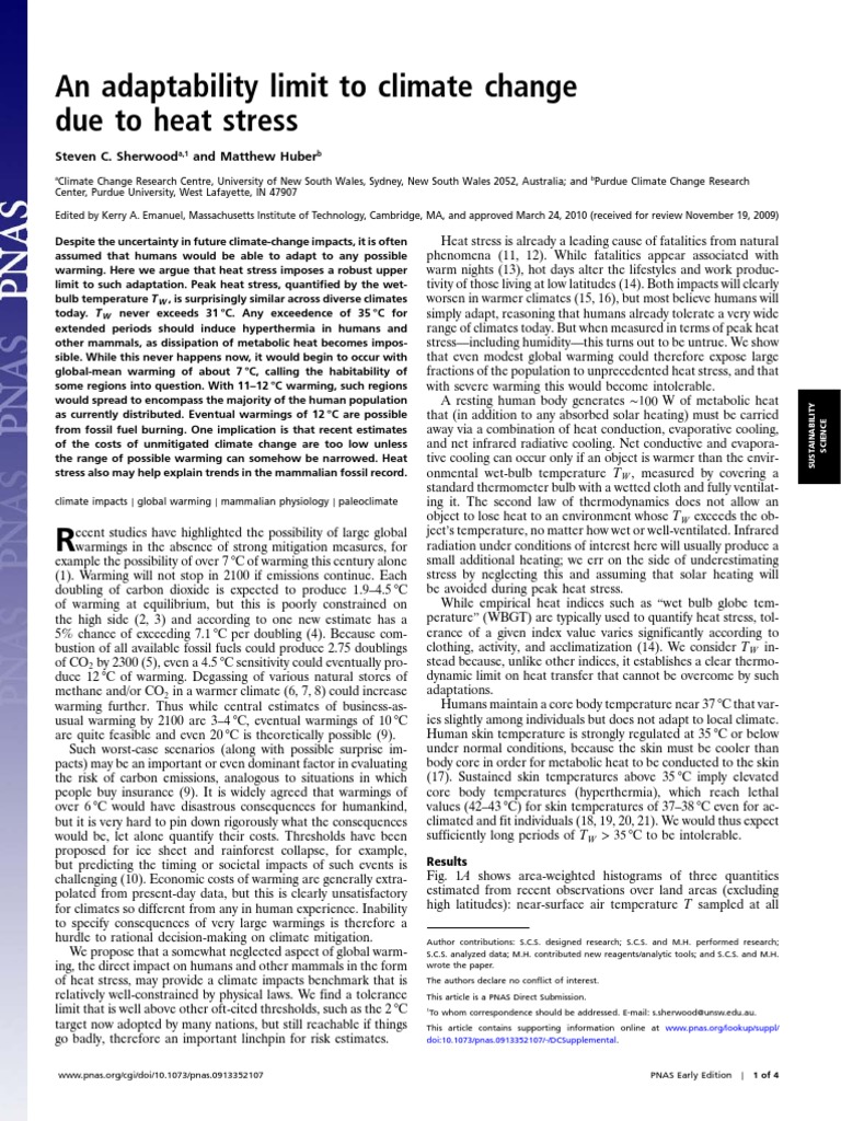warming to 2 degrees c. Nature 458:1158–U96. environments. Eur J Appl Physiol 82:52–60.